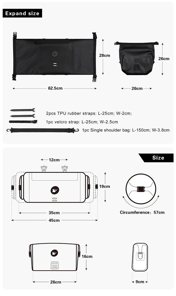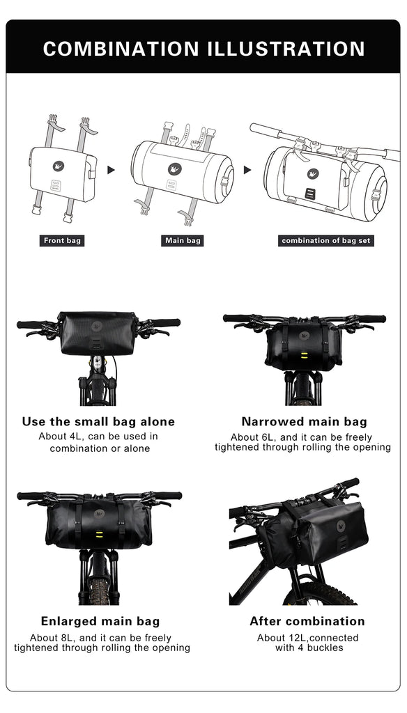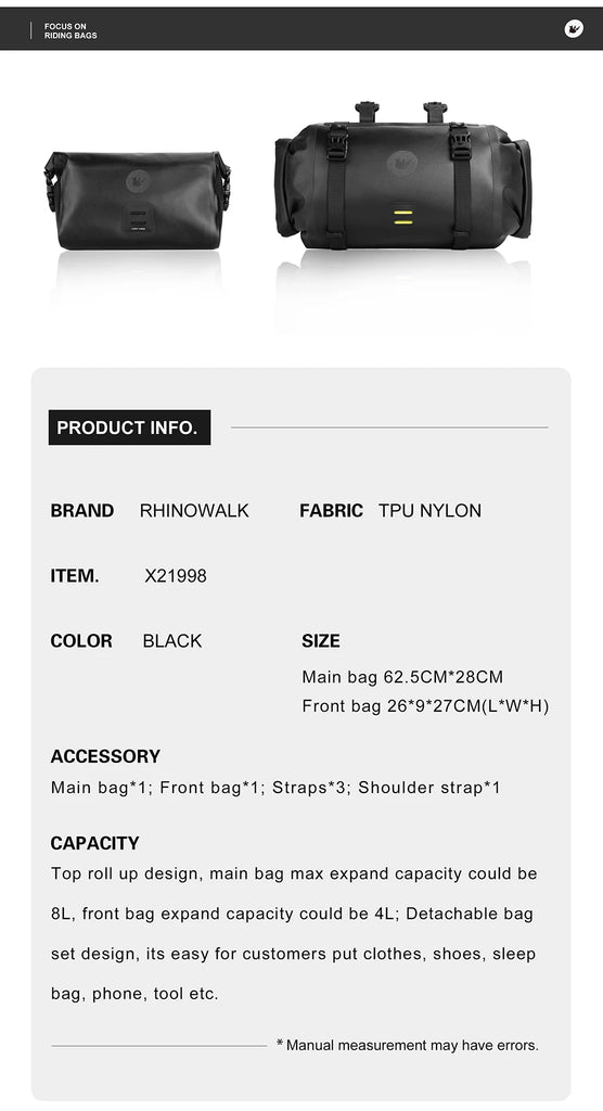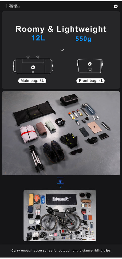 Rhinowalk Bike Handlebar Bag Waterproof Big Capacity 4L-12L Frame Front Tube Cycling Bag Trunk Pannier Bike Accessories